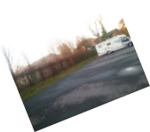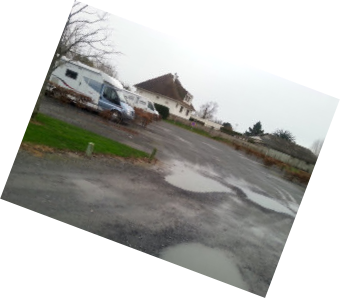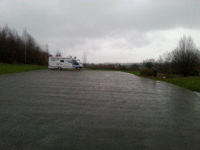 Nous dormons sur le parking goudronné mais l’aire est sur l’autre route en