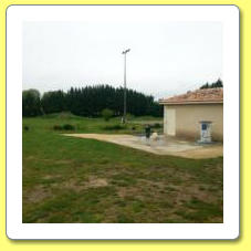 wc, tables pique nique et ping pong.
